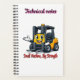 Funny forklift cartoon mascot spiral notebook with "Small Machine, Big Strength" quote. Perfect gift for forklift operators, warehouse workers, engineers & logistics lovers. Great technical notebook!