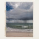 Tempestade de chuva sobre a fotografia do Oceano Atlântico por Zina Stromberg em um Planner. Belo Vista da praia da Flórida para o oceano Atlântico. Cenário dramático e excepcional da praia da Flórida: Nuvens de tempestade com lindas formações sobre o oceano Atlântico cobrindo a parte da luz do oceano desde o sol existente. Sobre o oceano pode-se ver uma Waterspout e raios de chuva. Ondas de oceano calmas e gentis. Calma antes da tempestade.