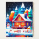 O brilho sutil das pequenas luzes à volta da janela acentua a confortável satisfação da casa de madeira, enquanto o boneco de neve se posiciona alegremente no portão, exalando calor no ar, simbolizando a alegria e felicidade da estação.