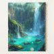Multiple waterfalls cascade into a glowing turquoise pool, surrounded by lush jungle and radiant crystals.