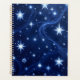 night sky filled with glowing stars and snowflakes in various sizes and styles. Set against a deep blue backdrop, the bright white and icy blue elements create a striking contrast. Wispy, wave-like light trails weave through the composition, adding motion and depth. The overall effect is magical and wintery—evoking a sense of wonder, serenity, and seasonal charm.