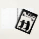 Esse planador é preto e branco com uma imagem de silhueta de dois ursos dançando na grama cercada por árvores sob nuvens brancas com uma coruja na árvore acima deles. Personalize seu texto na frente com o modelo.