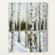 Veado em Snowfall II por Grace Popp. Um veado se esconde entre árvores em uma cena de vitória pacífica.