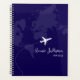 Planeador legal e moderno para uma agência de viagem... com um pequeno avião e o mapa do mundo impresso em uma cor azul de fundo profunda... perfeita para acompanhar as notas de viagem, ideias e compromissos.