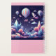 Eleve seu planejamento com este planejador caprichoso com um design de estilo de bloco geométrico em blues, brancos e curtidores. O planejador apresenta formas estilizadas de balões de ar quente, unicórnios, árvores, montanhas e uma fênix, todas feitas de forma lúdica e imaginativa. A design combina a abstrato com um toque de fantasia, criando um cenário único e encantador para sua organização diária.