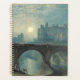 O Castelo de Alnwick. Joseph Mallord William Turner (1775 - 1851). Paisagem noturna em tons azuis escuros. No primeiro plano está um grupo de veados. No meio há uma ponte sobre o rio. A lua está no céu do pôr do sol. Reprodução de famosas imagens de arte no dominio público.