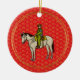 Este ornamento apresenta o meu desenho de um agente da patrulha de fronteira dos EUA a cavalo. O fundo tem um esboço dourado do logotipo da Patrulha de Fronteira dos Estados Unidos. No verso você pode personalizar isso com um Nome e Ano. Ou coloque o que quiser nas costas. Faz um presente excelente para qualquer um que você conheça que trabalha como agente de patrulha de fronteira. Desenhado por Sheila Cicchi, Brownielocks.com. Todos os Direitos Reservados. NOTA: O Dia da Patrulha de Fronteira dos EUA é 28 de maio por ano. Devido ao estilo design, você só pode comprar isso em ornamentos ROUND.