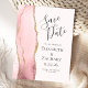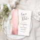 Este elegante e moderno salve a data do cartão postal apresenta uma cor d'água rosa pincelada, borda agitada com falso brilho dourado. O texto personalizável é uma cinza de carvão em um plano de fundo pálido. O verso repete as informações, juntamente com um endereço de retorno personalizável.