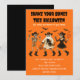 Procurando uma maneira divertida de convidar amigos para sua festa de Halloween? Este convite lúdico de Halloween é sobre vibrações assustadoras e diversão festiva! Apresentando esqueletos dançarinos, um carregando fantasma, uma abóbora, morcegos voadores, e cores ousadas do Halloween, é perfeito para estabelecer o humor. Quer você esteja hospedando um concurso de fantasia, um encontro de truques ou de trapaças, ou uma festa animada em outubro, este convite deixa todos entusiasmados. Use-o para festas caseiras, comemorações escolares ou eventos comunitários — é fácil compartilhar e define o tema imediatamente. O que o torna especial? A manchete ousada "Agite seus Ossos Este Halloween", aliada a trabalho de arte festivo, diz aos convidados que estão em uma noite de música, risos e dança.