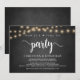 Agora é hora de festa, Anúncio de Elopamento / Convite de casamento, em quadro de giz de fazenda rústica, design de luzes de corda. Isso é perfeito para o seu casamento e festa de celebração pós-casamento. Adicione seus detalhes no tipo de letra correspondente.
