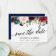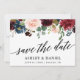 Caligrafia Elegante Moderna, Watercolor Burgundy Marsala Blue Floral Casamento Salva Cartão Azul