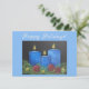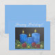 Três velas azuis, arte desenhada à mão, cartão de feriados felizes.