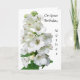 Um Cartão de Saudação para o Aniversário da Mãe na frente é uma flor branca com a Mãe de Aniversário