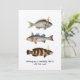 Cartão de Diversão de Aniversário do Pescador Fish Hat Divertido com uma ilustração de 3 peixes vestindo chapéus de aniversário. Personalize com sua frase de diversão favorita. Cartão perfeito para amantes da pesca. Use como cartão de aniversário ou para presentes de Natal e feriados.