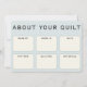 Uma colcha é um trabalho de amor e, muitas vezes, torna-se um tesouro de família. Ao presentear uma colcha, use este cartão para ajudar o destinatário a aprender a cuidar de sua nova e preciosa colcha! As colchas ficam ainda melhores quando são amadas, e este cartão incentivará o destinatário a realmente usá-la.