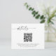 Essa bela placa de RSVP de Casamento apresenta caligrafia manuscrita com um layout minimalista para dar o tom ao seu casamento moderno estilizado! Adicione facilmente um código QR para o seu site de casamento e personalize o texto *maioria* para ajustado das suas necessidades. As cores do texto são totalmente editáveis —> clique no botão "Personalizar mais" para editar!