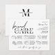 Cartões de cuidado com o Loaf de Pão Fresco com fontes modernas de escrita e ícones de cuidado. Este guia minimalista de instruções de assistência a pão de design inclui as dicas de assistência mais importantes com gráficos para cada um, para que os seus clientes saibam como melhor armazenar pão assado recentemente. Você pode personalizar todas as instruções de assistência, adicionar seu logotipo e detalhes comerciais a este cartão para fazer suas inserções personalizadas de pacotes de padaria.