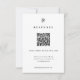 Este cartão de RSVP preto e branco apresenta um design limpo e minimalista com um código QR moderno para respostas online fáceis. Perfeito para casamentos formais e de gala, este cartão de resposta elegante mantém seu conjunto harmonioso e oferece aos convidados uma experiência simples de scan para RSVP. O estilo monocromático atemporal combina perfeitamente com convites de casamento elegantes e clássicos.