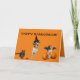 Um cartão de Halloween com grandes dinamarqueses, gatos, abóboras e uma aranha assustadora.