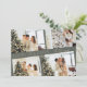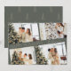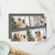 O moderno Elegante Green Four Photo Collage Natal Holiday Card Envia cartões de natal bonitos com estes cartões de Natal de colagem de 4 fotos! Eles apresentam quatro modelos de fotos com na moda, tipografia moderna no centro, lendo "Feliz Natal". A parte de trás do cartão contém uma árvore de Natal moderna simples com uma cor clara de bronzeado sobre um fundo verde da floresta (para corresponder à parte frontal).
