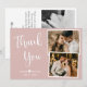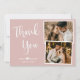 Cartões de agradecimentos De Colagem De Fotos De Casamento Branco Dusty, Rosa-Rosa, Elegante E Minimalista. modelo de cartões de agradecimentos multifoto do casamento na moda com duas (2) fotos na frente e uma (1) fotos no verso. Com o texto "Obrigado" em uma bonito letra escrita à mão num script de tipografia em branco sobre fundo cor-de-rosa-rosa rosa, cor-de-rosa, cor-de-rosa, cor-de-rosa-rosa-azul-esfarelo. Personalize o nome personalizado e a mensagem do obrigado. Se preferir escrever manualmente a sua nota, basta eliminar o texto de amostra para obter mais espaço. Se precisar de ajuda ou item correspondente, entre em contato com o designer!