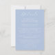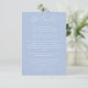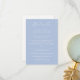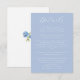 Elegante e chic. Este cartão de cercado contém todos os detalhes mais finos que os convidados precisarão, juntamente com uma pequena ilustração de hydrangea floral, contra um fundo azul empoeirado. Outros itens, como convites, cartões RSVP e outros, estão disponíveis na mesma coleção.