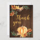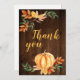 Agradeça aos seus convidados por virem à sua ocasião de outono, seja um chá de bebê, chá de noiva, casamento ou aniversário. Este cartão apresenta uma abóbora em aquarela com folhas coloridas de outono. Adicione sua mensagem no verso ou deixe em branco e escreva uma mensagem à mão para os seus convidados.