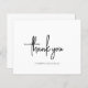 Cartão de agradecimento de casamento clássico e elegante dentro do orçamento, apresentando um layout simples com "obrigado" em uma fonte moderna e seus nomes e data de casamento abaixo. O layout limpo e minimalista torna este cartão de agradecimento de casamento preto e branco ótimo para um casamento tradicional e formal.