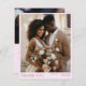 Este design moderno de cartão de agradecimento apresenta texto dourado falso refinado em um fundo rosa suave. O layout apresenta uma grande foto de retrato na frente e uma foto paisagem no verso, criando um visual atemporal e sofisticado. O verso também inclui espaço para sua mensagem pessoal, facilitando o compartilhamento de sua gratidão com estilo. Perfeito para agradecer aos convidados do casamento e preservar memórias do seu dia especial.