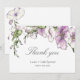 O nosso cartão de agradecimento de casamento com pensée moderna é uma forma maravilhosa de celebrar e compartilhar o seu evento alegre. Esta coleção única de pensées apresenta belas pensées em roxo suave em aquarela