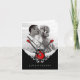 Cartão de agradecimento de casamento não convencional com tema de rock and roll com ilustração de guitarras elétricas, asas e ornamentos barrocos vintage elegantes em vermelho, branco e preto.