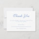 RSVP de casamento com fundo branco e azul e texto azul. Agradecimento de casamento azul. Cartão de agradecimento de casamento vintage. Azul elegante.