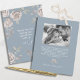 Um cartão de agradecimento de casamento atemporal com rosas em aquarela azuis empoeiradas e rosas empoeiradas com folhagens elegantes. Este design floral combina perfeitamente com o conjunto de convite de casamento correspondente e é perfeito para enviar gratidão a familiares e amigos. Personalize com suas iniciais e mensagem para um toque final romântico e elegante.
