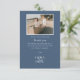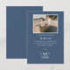 Compartilhe um agradecimento sincero com este design de foto de casamento azul elegante com um layout moderno e limpo e tipografia serif clássica. A borda azul profunda emoldura o retrato do casal favorito para um visual atemporal e romântico. Perfeito para casamentos na praia, costeiros ou clássicos com um clima calmo e refinado.