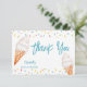 Cartão de agradecimento de chá de panela de noiva de sorvete e confeitos servidos.