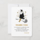 O design apresenta uma ilustração de uma coruja legal e fofa com um manto e um gorro de formatura preto e segurando um diploma de formatura sob uma nuvem de confetes. Cartões de agradecimento de festa de formatura exclusivos para pré-escolares, jardim de infância, alunos do ensino fundamental e mais!