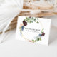 Este cartão de agradecimento floral e folhagem de borgonha é perfeito para um casamento de inverno. O design boho elegante apresenta flores em tons de azul-marinho, rosa desbotado e vinho com detalhes artísticos a lápis.