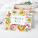 Um cartão de agradecimento brilhante e alegre com lindas flores femininas de primavera em amarelo, laranja, rosa e branco. O cartão é intencionalmente deixado em branco por dentro para que você escreva ou insira sua própria mensagem de agradecimento desejada. Este cartão coordena com uma coleção de chá de panela de noiva floral de primavera e também pode ser usado para outras ocasiões.