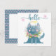 Um adorável gato de cinza azul com um colarinho floral. A parte traseira do cartão tem bolinhas correspondentes e um bloco para sua mensagem pessoal.