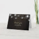 Fundo de madeira rústica com cordão de luzes pendentes e lâmpadas Cartão de Agradecimento perfeito para o seu casamento no campo. Personalize com seu texto no interior do cartão. Verifique nossa loja para convites, adesivos e muito mais deste lindo design.