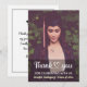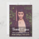 Um design personalizado de foto de formatura para agradecer a todos que enviaram suas congratulações e celebraram a conquista do graduado que se formou no ensino médio ou faculdade. O design de graduação elegante é ótimo para agradecer aqueles que enviaram parabéns e compareceram à festa de formatura. Substitua a imagem por uma foto vertical do graduado. O texto em caligrafia pode ser personalizado com o nome e turma do graduado. Você pode alterar a cor da fonte, tamanho da fonte e tipo de fonte. Você também pode alterar a cor do gráfico do coração de agradecimento usando a Ferramenta de Design. O design de agradecimento especial é seu para personalizar e personalizar como desejar. O design pode ser transferido para outros produtos.