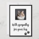 Um simples cartão de condolências pode significar o mundo para alguém que está a sofrer a perda do seu querido animal de estimação. Projetado para que ele possa ser baixado ou impresso, você pode guardar o cartão como está ou trocar a foto por seu. Enviar como está, sem mais formulações, é ótimo. O verso é deliberadamente vazio para que você possa escrever sua própria mensagem pessoal, se quiser. Você poderia compartilhar uma memória favorita dos animais de estimação - os donos de animais de estimação acham isso muito reconfortante. A perda de um animal de estimação é muitas vezes ignorada e se importar o suficiente para até mesmo enviar um cartão simples mostra um excelente de empatia e cuidado.