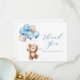 Podemos esperar! cartões de agradecimentos de Chá de fraldas temático Urso-ursinho com um ursinho de cor d'água voando alto com balões azuis e castanhos. Personalize com suas informações para a mamãe a ser. Clique em "clicar para personalizar mais" para alterar o estilo, o tamanho ou a cor da fonte.