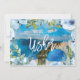 Um cartão "será que você será meu usher" com espaço para adicionar sua mensagem pessoal no verso e alterar o nome na frente. Com uma imagem em aquarela de Santorini, Grécia, e sotaques florais e folhagens azuis. Perfeito se você vai se casar lá! Por favor, visite minha loja para ver os cartões coordenados para melhor homem, padrinho, menino de página, dama de honra e menina de flores, bem como outras variações de design nesta maravilhosa coleção da Grécia.