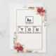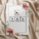 Apresentando o inspirador cartão "Seja você", projetado com uma reviravolta criativa inspirada pela mesa periódica de elementos. A mensagem "Seja você" é lindamente feita usando símbolos atômicos, lembrando ao destinatário que abraça suas qualidades únicas e brilha intensamente em seu próprio elemento. Esta carta é uma escolha perfeita para dar poder aos outros e encorajá-los a serem seus verdadeiros seres de uma forma na moda e cientificamente inspirada.