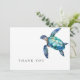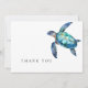 Cartão de agradecimento de funeral, luto. Nome da família e agradecimentos no verso. Tipografia. Aquarela. Simples. Tartaruga Marinha Tropical. Nome do falecido e anos de vida.