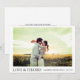 Este simples modelo de cartões de agradecimentos de casamento de fotos na moda apresenta os seus nomes e datas abaixo da sua fotografia, juntamente com 'AMOR & OBRIGADOS. Você pode optar por alterar a fonte, a pontuação ou a cor usada para vários elementos de texto deste design na frente e/ou no verso. Por exemplo, você pode escolher alterar a cor do texto 'LOVE & OBRIGADOS. Escolhemos uma matiz cor de laranja pálida para o fundo no fundo.