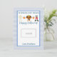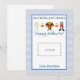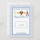 Este cartão de Dia das Bruxas do professor apresenta um fundo de xadrez azul e branco com sotaques laranja e diz "Sem truques, apenas trata. Feliz Dia das Bruxas!" e uma linda trio de aquarelas de figurinos de halloween. Há também espaço para deixar um cartão-presente. Personalize com o nome do seu filho.