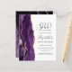 A borda esquerda deste elegante convite de aniversário surpresa apresenta uma cor d'água púrpura e borda agitada com falso brilho dourado. O texto personalizável combina manuscrito, copperplate e fontes itálicas em cinzas de carvão em um fundo branco. O verso apresenta um design de agate roxo e dourado correspondente.