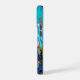 Azuis e castanhos e uma pitada de púrpura parecendo águas turquesas e pedras naturais parecidas com um rio correndo, ou ondas batendo em uma costa